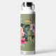 PixDezines water bottle, moody botanical, tropical paradise flowers - hibiscus, ginger, burgundy plumeria with palms and monstera foliage. DIY background colour, customize it with your favourite font. Copyright © 2023 PixDezines™. All rights reserved.