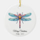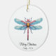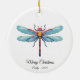 Bring a touch of nature and retro charm to your holiday decor with this beautiful Pixel Art Blue Dragonfly Ceramic Ornament. Featuring a detailed and colorful 8-bit design of a magical blue and pink dragonfly, it’s a perfect piece for nature lovers, insect enthusiasts, gardeners, and fans of unique, retro art. This high-quality circle ornament is easily personalized—add a name and year (like 'Merry Christmas Emily - 2025') to create a treasured keepsake or a thoughtful, custom gift. Celebrate the season with this stunning and delicate insect design!