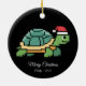 Pixel Art Turtle Tortoise Santa Hat Ceramic Ornament