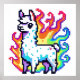 Discover the retro charm of the "Pixel Blaze Llama" poster print. This design features a pixelated llama surrounded by a vibrant burst of flames in shades of red, orange, yellow, green, blue, and purple. The nostalgic 8-bit style combined with the dynamic flame colours creates a unique and eye-catching piece of art. The design file is also available for instant download.