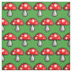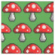 A pixel art fly agaric mushroom. The red spotted mushroom is on a green background. The background colour can be changed.