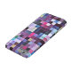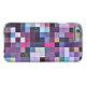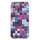 Cool abstract graphic pixel squares iPhone 6 case. Stylish and bold multi coloured tile block design. Mix of many colours with a predominance of purples and blues.