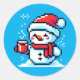 Pixelated Snowman with Coffee - Winter Holiday Art Classic Round Sticker