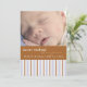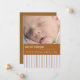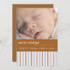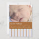 Introduisez votre nouveau petit avec ce carte photo de rayures bleues et marron. Sur le devant il est facilement customisé avec votre photo bébé et informations de naissance, et sur le dos mise à jour avec votre nom de famille.