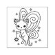 A whimsical illustration of a fairy-like fantasy creature that resembles a cat with butterfly wings. The kitten is hovering in place holding a small star shaped lantern in its front paw.