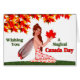 Pixie canadienne mignonne tenant une feuille d'érable rouge. Le texte dit "Souhaitez-vous une fête du Canada magique". Customisez à l'intérieur des zones de salutation, de message et de signature.