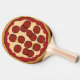 Funny ping pong paddle with cartoon graphics of a pepperoni pizza pie, on both sides. Customize to add any text you want. Fun gift idea to your favourite pizza lover.