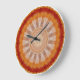 A wall clock with novel face design based on a pizza. A fun clock for your kitchen or office.