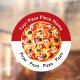Promote your pizza shop or Italian restaurant with these cool pizza promotional window cling decal stickers with image of a pizza pie and loads of toppings and text you can customize online that follows the curved shape of the window cling sign.