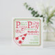 A pizza party birthday invitation featuring a pizza box inspired red and green design. Personalize with your name and information.