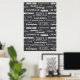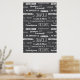 Pizzeria restaurant large wall art poster of traditional Italian pizza names in white on a grey background. Perfect to adorn the walls of a pizza restaurant or Italian trattoria