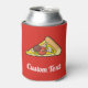 Pizza slice cartoon illustration. Custom background colour. Custom text on both sides.