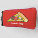 Cartoon pizza slice icon. Custom background colour. Custom text.