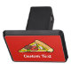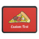Pizza slice cartoon illustration. Custom background colour. Custom text.