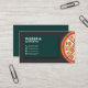 For your pizzeria restaurant, food truck, home delivery food service or cooking chef, this classy business cards will be perfect. It comes with a half of a Margherita pizza placed on a wooden board and customizable information decorated with icons on a dark green background.