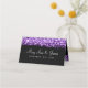 Elegant Wedding Party Sparkles Purple , a tented guest seating place card design template.
