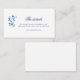 Carte d'enceinte simple et élégante bleu et blanc fleurs mariage détails carte.