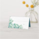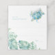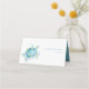 La carte tropicale ou la carte d'escort design comporte une bordure inférieure de feuilles de palmiers aquarelés avec une tortue de mer dans les tons bleus et turquoise. Espace prévu pour le nom de l'invité et le numéro de table. Les cartes sont inversées pour révéler les noms de mariée et de mariée correspondants et la date du mariage. L'intérieur est assorti d'une couleur bleu turquoise uni. Conçu pour correspondre à Do Tell a Belle collection de tortues de mer. Parfait pour les mariages à la plage et à destination. Pour en savoir plus sur la papeterie de réception de mariage visitez www.zazzle.com/dotellabelle Art et design de Victoria Grigaliunas