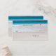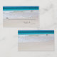 Belle carte de réception de mariage sur le thème de la plage, avec une photo d'une plage de sable blanc et d'une eau bleu clair. Le texte en marron peut être personnalisé pour lire ce que vous voulez. Inscrivez à la main le nom et le numéro de table de chaque invité sur les cartes.