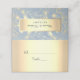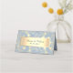 Moderne, élégante, fausse feuille d'or et carte de place mariage bleu poussiéreux avec dentelle fleurie de luxe.