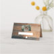 Ce design comprend un arrière - plan rustique en planches de bois avec la photo de votre couple. L'arrière - plan en bois marron rustique est complété par le texte blanc et votre photo personnelle qui est affiché comme fixé sur l'arrière - plan en bois avec des boulons rouillés rustiques. Le verso de la carte de place montre les noms des mariés et des mariés et la date du mariage. Les tons marrons du grain de bois créent une grange rustique comme un jardin. Design élégant de carte de lieu de mariage avec des éléments modernes. Des invitations de mariage et d'autres articles de papeterie sont également disponibles. Facile à personnaliser avec vos détails. Ecrivez à la main vos noms d'invités et numéro de table dans l'espace prévu à cet effet.