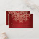 Un magnifique grenat à bijoux et un mariage rouge et or rubis ou toute carte de place de table occasion spéciale avec un sari ornemental d'inspiration indienne exotique comme un motif avec un lotus et un coucher de soleil fleuri. Cette belle et élégante carte de séjour moderne haut de gamme et de luxe de style indien est parfaite pour toute occasion formelle avec une soirée orientale indonésienne marocaine arabe ou le thème aladdin. Design © Chrissy H. Studios, LLC. Tous droits réservés.