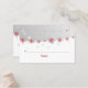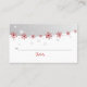 Carte de place mariage à flocons de neige rouge, gris argenté, blanc, avec étoiles et élégantes flocons de neige rouge sur gris. Texte en rouge et gris. Un design élégant parfait pour vos mariages d'hiver, de décembre ou de Noël. Moderne et contemporain mais adapté pour un mariage traditionnel.