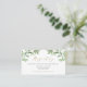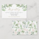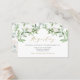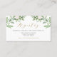 Carte d'enregistrement Whimsical et élégant. Il présente des illustrations d'aquarelle de verdure et de fleurs blanches avec un motif botanique assorti. Personnalisez en ajoutant des noms, des noms de magasins et d'autres détails. Cette carte verte sera parfaite pour les mariages, les douches nuptiales, les baby showers et autres événements.