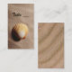 Plage de sable avec carte de table mariage en coquillages de pétoncles.