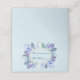 Cercle de cristaux en bleu, vert et violet pour un nom et un porte-numéro de table. Texte bleu foncé sur la couleur bleue à l'intérieur et à l'extérieur des pages.