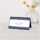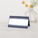 Elégant bleu foncé avec une bordure argentée carte de place avec les noms de la mariée et du marié sur le dos avec leur date de mariage.