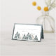 Cette belle carte de mariage de forêt blanche et verte présente une scène de forêt aquarelle avec un cerf mâle et femelle. Il y a de l'espace pour écrire dans un nom et un numéro de table. L'arrière/l'intérieur est vert forêt.