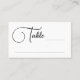 Jolies cartes d'escorte mariage plates en noir et blanc avec table écrite dans un joli script avec un grand T. Écrire le numéro de table et le nom à la main.