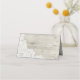 Carte de place pliée rustique chic faite dans un look de planches en bois blanchis avec des graphiques d'accents en dentelle blanche. Personnalisez le texte personnalisé, au verso de la carte, pour lire ce que vous voulez. Personnalisez l'avant de chaque carte, à la main, pour votre réception de mariage.
