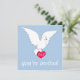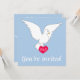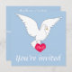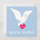 Ce magnifique faire-part de mariage est orné d'une colombe blanche sur un arrière - plan bleu placide magnifique qui est un joli look pour un mariage. La colombe tient aussi sur un amour rouge entendu qui contient des initiales qui peuvent être customisées comme initiales de la mariée et du marié et est une touche romantique à l'avant de l'invitation. Le dos de l'invitation est un simple arrière - plan bleu placide avec tous les détails de l'heureux événement en blanc.