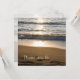 Invitations élégantes de renouvellement de voeu de mariage comportant une belle photographie des vagues se brisant sur la plage au coucher du soleil avec le texte entièrement personnalisable pour inclure vos détails de cérémonie de renouvellement de voeu.