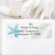 Une jolie étoile de mer bleue sur une plage de sable blanc de cristal renvoie les étiquettes d'adresse.