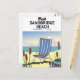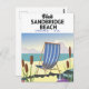 Plage du Donnant France beautiful vintage style deck chair on a beach seaside travel poster.