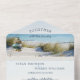 Elégant tout en un seul déchiré avec des images d'une plage avec des dunes et une lanterne. Parfait pour une fête côtière.