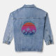 Cool jumelant vestes de denim vacances familiales pour femmes à porter sur une croisière île. Doté de beaux palmiers face à un joli coucher de soleil de plage rose. Veste en jean personnalisée pour votre séjour d'été à la mer.