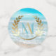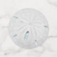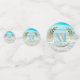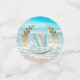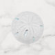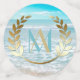 Plage Mariage ou Table d'Événement Confetti | Matches Moderne Monogram Beach Wedding Invitation | Dollar de sable blanc d'un côté et de l'arrière Une approche ludique de la typographie dans le texte - avec initiales de mariée et de chambre entourées d'une couronne de laurier sur le dessus - en deux couleurs (turquoise et or) - Mariage unique conçu pour le BarefootBride™ par ©WhimsicalArtwork™