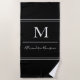Plage Moderne Noir Monogramme Blanc Script Serviette de