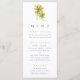 Moderne, ludique et tropical, ce menu mariage présente une peinture à l'aquarelle de deux palmiers associée à une typographie chic.