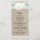 Plage Rustique Burlap Lace Carte menu - Turquoise