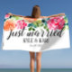 Marié ! Quelle époque merveilleusement romantique pour être M. et Mme ! Quelle meilleure façon de commencer votre vie ensemble qu'avec une serviette personnalisée pour votre lune de miel ? Cette élégante serviette personnalisée est parfaite pour les jeunes mariés ! Il présente vos noms et votre date de mariage, ainsi qu'un joli design floral. Utilisez-le à la plage, à la piscine ou dans votre propre jardin ! Un must pour tout couple en lune de miel !