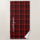 Élégante serviette de plage faite dans le classique clan écossais noir et rouge Cunningham tartan plaid motif. Personnalisez le grand texte blanc en fonction de vos besoins.