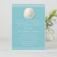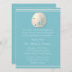 Beau faire-part de mariage à thème de plage en bleu turquoise, avec des graphiques d'un dollar de sable d'ivoire, sur le dessus et des rayures d'ivoire, sur le haut et le bas. Personnalisez le texte blanc en fonction de vos besoins. Produits mariages de Dollar de Sable Correspondant disponibles.