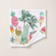 L'ensemble de serviettes de bain à thème de la plage comprend un motif de palmiers aquarelles, de planches de surf, d'étoiles de mer, de coquillages, de cônes glacés, d'ananas, de pastèque et un mignon crabe rouge portant un panneau en bois flottant qui dit "Beach Bum". Parfait pour les thèmes plage, tropical, côtier, nautique, surf, été, Californie, hawaïen et île. Oeuvre originale KL Stock.