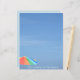 Cette papeterie bleue ou papier à gratte-ciel est plage avec un ciel photographique, un parapluie de plage coloré dans le coin inférieur et "La vie est meilleure à la plage" texte personnalisable. Cette image est la photographie originale de bord de mer par JLW_PHOTOGRAPHY.