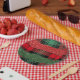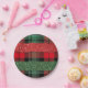 Celebrate the holiday season with these festive paper plates. They feature a red and green plaid pattern with red and green faux glitter bands.